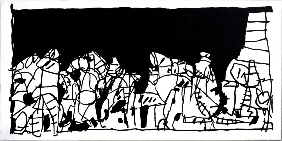 Mais tout simplement de mon retour en France après une exposition à New York. La nuit, l’avion apporte un refuge tumultueux et le bonheur d’une solitude au milieu de la foule. Pendant une dizaine d’heures, c’est un climat parfait pour le voyageur qui aime dessiner. En 1993, durant ce vol transatlantique, j’ai noirci un carnet à dessins que j’ai presque aussitôt oublié.